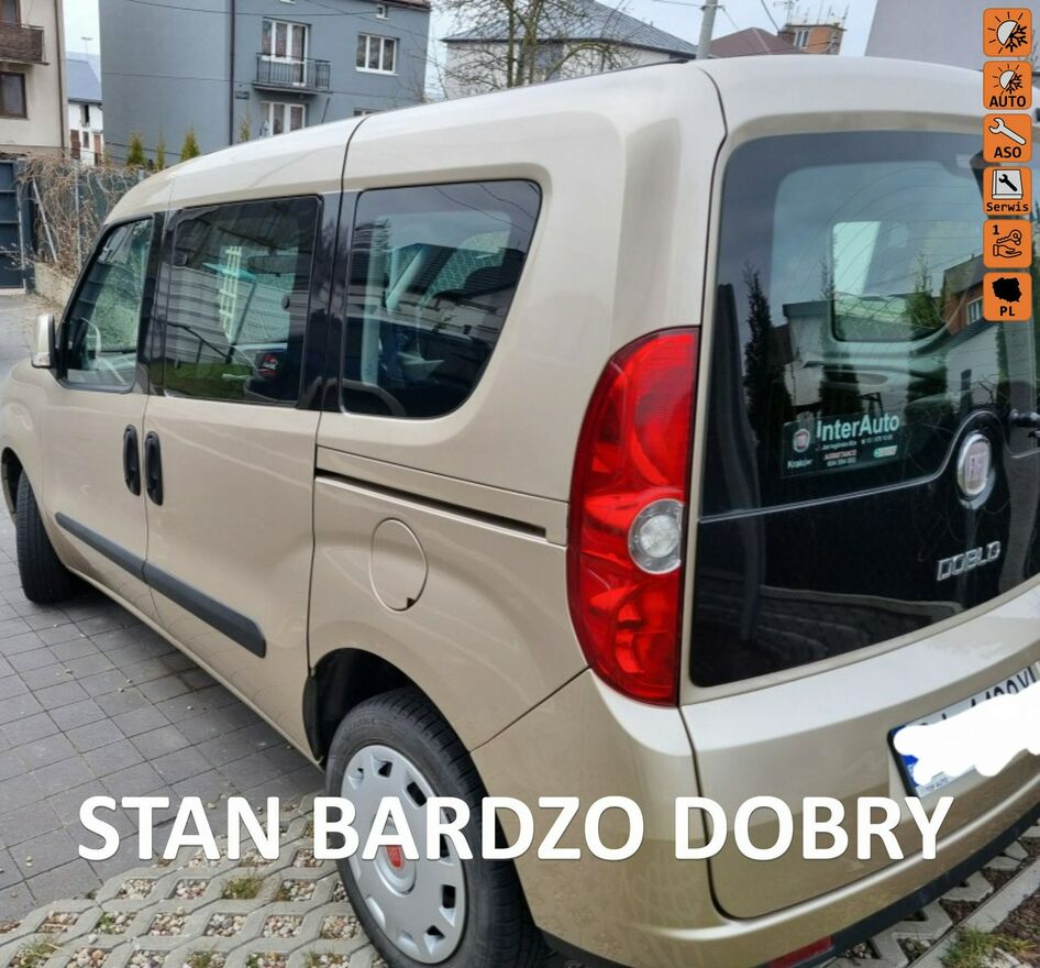 Dzień Dobry.Fiat Doblo od 1-właściciela pana w wieku ponad 60 lat , ZAKUPIONY ZOSTAŁ JAKO NOWY W POLSKIM SALONIE , garażowany w domu prywatnym, bez uszkodzeń ,zadrapań i otarć lakierniczych,oraz bez zagięć na nadwoziu które nie przechodziło nigdy lakierowania żadnego elementu . Samochód posiada homologację ciężarowo osobową ale był UŻYWANY PRYWATNIE i tylko jako samochód rodzinny . Posiada pełną dokumentacje zakupu samochodu nowego oraz wszystkie faktury za poszczególne przeglądy serwisowe wykonane w ASO Fiata. Dodatkowo posiada system asystenta hamulca ręcznego, który ułatwia ruszanie pod górę, dzielone siedzenia tylne,niefabryczne dodatkowo zamontowane odcięcie zapłonu, oraz regulacje pionową siedzeń i kierownicy.Tapicerki nie noszą żadnych śladów zużycia ponieważ nie nic przewożone i transportowane. nie są poplamione ,nie są porysowane i nie mają przetarć . Serwisowany co rok niezależnie od przebiegu i obowiązkowo co 10 000 km wymieniany olej na co są faktury z serwisu . Istnieje możliwość zamiany samochodu na inny oraz zakupu samochodu na raty w nisko oprocentowanym kredycie w jednym z kilku Banków z którymi komis współpracuje na stałe.SAMOCHÓD JEST OBJĘTY KOMISOWĄ GWARANCJĄ NA BEZWYPADKOWOŚĆ ,NA PRZEBIEG I NA LEGALNOŚĆ POCHODZENIA.
