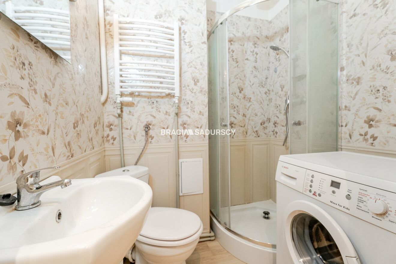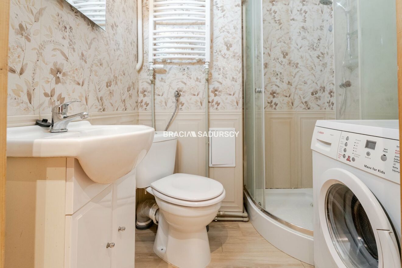 Wyposażenie łazienki: WC, umywalka, pralka, kabina prysznicowa |